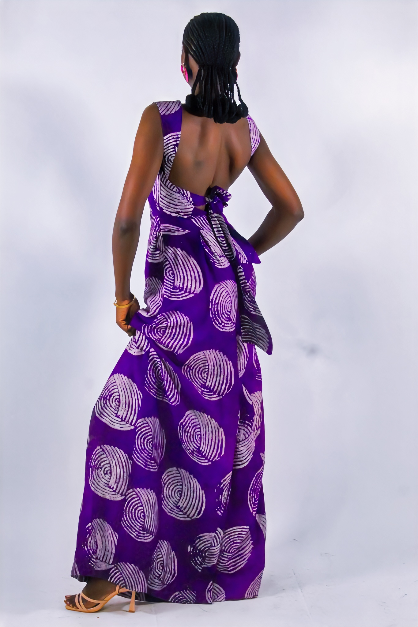 Combinaison au bas large et fluide, avec un dos ouvert sublimé par une languette à nouer élégamment en nœud. Une pièce qui allie confort et raffinement.