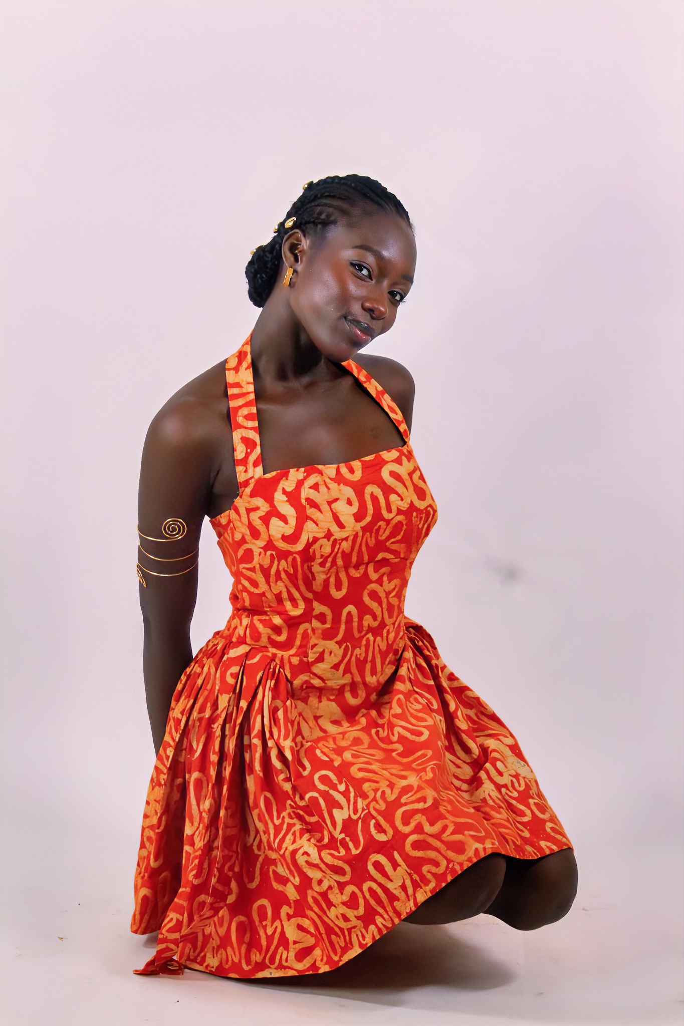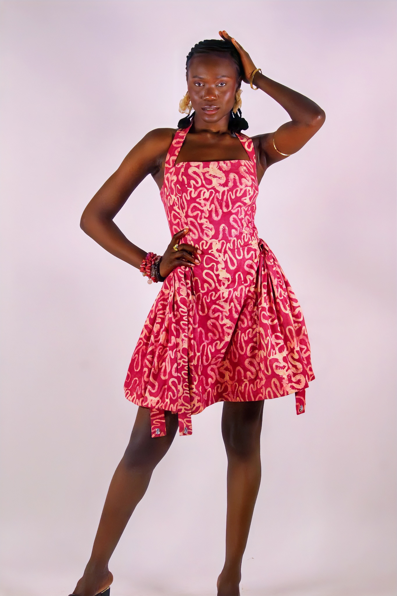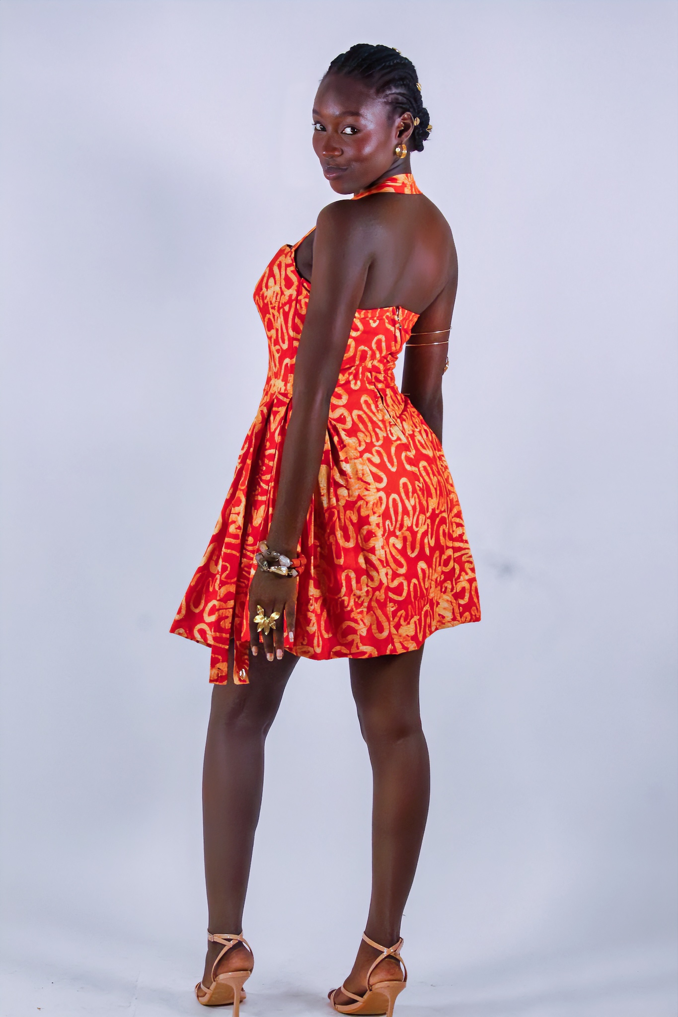 Robe courte et audacieuse, avec du volume sur les côtés et un dos nu élégant. Une pièce à la fois féminine et pétillante, pensée pour celles qui aiment briller sans en faire trop
