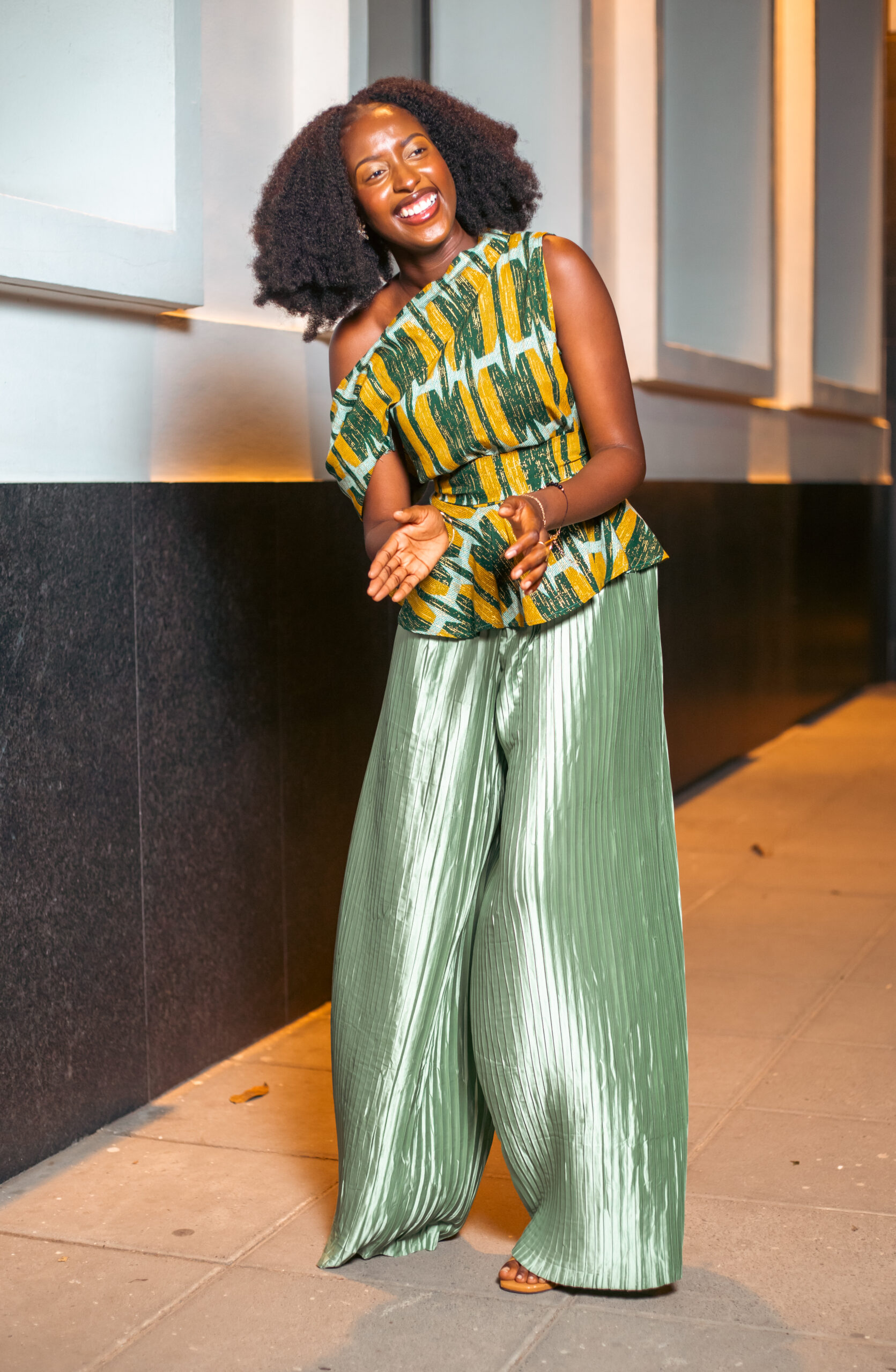 Ensemble blouse et bas larges plissés, alliant confort et élégance pour un style décontracté-chic